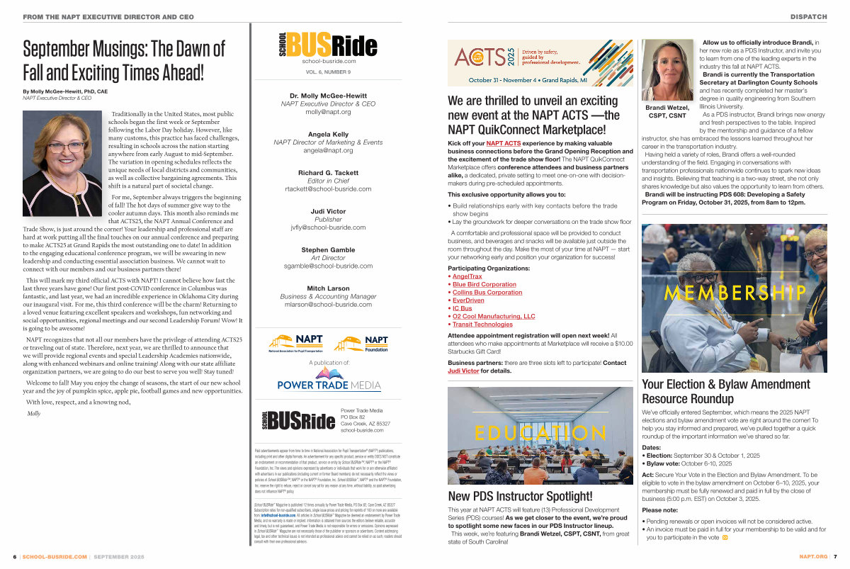 Allow us to officially introduce Brandi, in her new role as a PDS Instructor, and invite you to learn from one of the leading experts in the industry this fall at NAPT ACTS. Brandi is currently the Transportation Secretary at Darlington County Schools and has recently completed her master’ s degree in quality engineering from Southern Illinois University. As a PDS instructor, Brandi brings new energy and fresh perspectives to the table. Inspired by the mentorship and guidance of a fellow