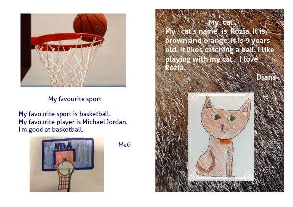 My cat’s name is Rózia. It is brown and orange. It is 9 years old. It likes catching a ball. I like playing with my cat . I love Rózia.