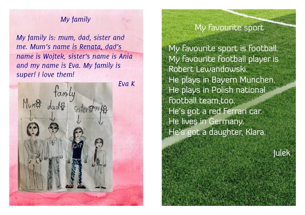 My family is: mum, dad, sister and me. Mum’s name is Renata, dad’s name is Wojtek, sister’s name is Ania and my name is Eva. My family is super! I love them!