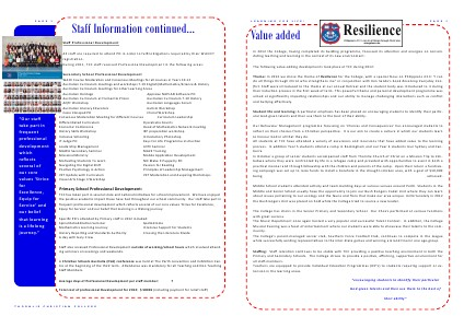 In 2012 the College, having completed its building programme, focussed its a en on and energies on consolida ng teaching and learning in the context of its new environment. The following value-adding developments took place at TCC during 2012: Theme: In 2012 we chose the theme of Resilience for the College, with a special focus on Philippians 4:13: “I can do all things through Christ who strengthens me” in conjunc on with Ken Sande’s book Resolving Everyday Con? ?ict. Sta? were introduced to the theme at our annual Retreat and the student body was introduced to it during their induc on process in the ?rst week of term. This powerful theme and personal development programme was aimed at signi?cantly impac ng rela onships and our ability to manage challenging interac ons such as con?ict and bullying e?ec vely. Student life and learning: A par cular emphasis has been placed on en