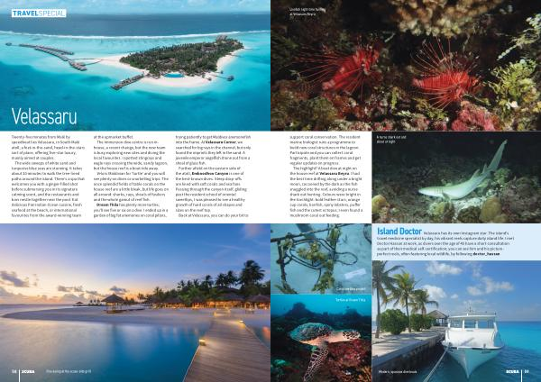 Further afield on the eastern side of the atoll, Emboodhoo Canyon is one of the best-known dives. Steep drop-offs are lined with soft corals and sea fans. Passing through the canyon itself, gliding past the resident school of oriental sweetlips, I was pleased to see a healthy growth of hard corals of all shapes and sizes on the reef top.
