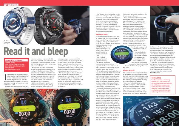 The set messages are what you’ d expect, along the lines of‘ running low on gas’‘ approaching no deco limits’‘ let’ s ascend to safety stop’ and so on. There’ s also an SOS function; you trigger it by pressing and holding for 10 seconds. Your watch then automatically transmits a distress signal every 25 seconds, effective over a distance of 60 metres.