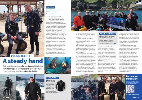 John is now a Dive Leader and an active Open Water Instructor at Dacorum SAC in Hemel Hempstead, Hertfordshire. He regularly leads try dives and is part of the club’ s instructor team. Now in a second