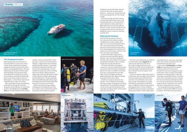 By the following morning, the threehour ride over to the Exumas had been completed and we were ready to dive again. For me, much of the appeal of this area is the variety of dive sites and the diversity of marine life that comes with it; from deep plunging walls to shallow reefs, shipwrecks to plane wrecks, sharks to reef fish, crustaceans and mollusks.