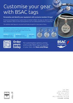 Produced and dispatched by Custom Divers on behalf of BSAC, the tags are ideal for marking bags, regulators, BCDs or even club equipment such as clubhouse / lockup keys or boat keys.