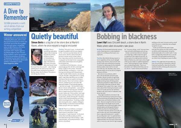 Congratulations to James Hickman of Reading Bluecoats, who scored the most points based on marks out of 10 from each of the three judges. You can read James’ compelling piece on Whirl Rocks in the Farne Islands in the previous issue, December 2025. Thanks again to my fellow judges Yo-Han Cha and Kirsty Andrews, and to our sponsor O’ Three for providing a 90 Ninety Trilaminate Dry Suit worth £ 2,500 as the star prize. We hope to return with another competition in 2026. Simon Rogerson, Editor
