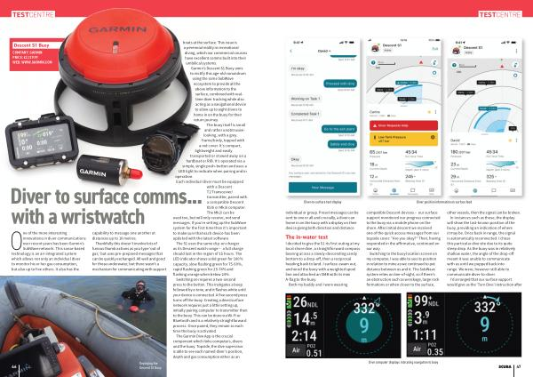 Diver-to-surface text display Diver position information on surface feed individual or group. Preset messages can be sent to one or all and crucially, a diver can home in on the buoy with a display on their device giving both direction and distance.