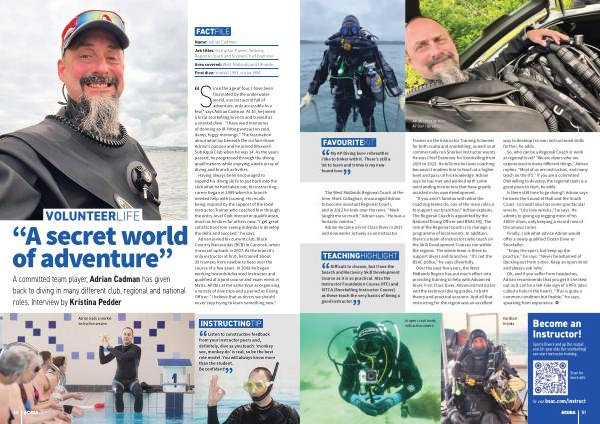 “ If you aren’ t familiar with what the coaching teams do, one of the main roles is to support our branches,” Adrian explains. The Regional Coach is appointed by the National Diving Officer and BSAC HQ. The role of the Regional Coach is to manage a programme of local events. In addition, there’ s a team of instructors who teach on the Skill Development Courses run within the regions. The whole team is there to support divers and branches.“ It’ s not the BSAC police,” he says cheerfully.