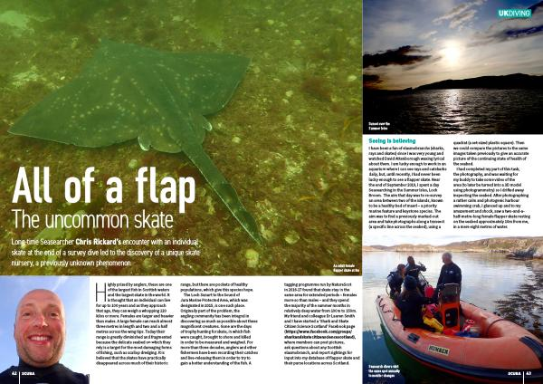 Long-time Seasearcher Chris Rickard ’ s encounter with an individual skate at the end of a survey dive led to the discovery of a unique skate nursery , a previously unknown phenomenon
