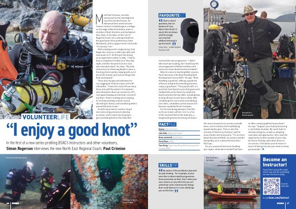 So , as a seasoned instructor heading up a region , what advice would Paul have to offer a newly qualified Ocean Diver ? He says : “ Support your club by becoming a committee member . We need clubs to develop and grow , as well as adopting new ideas and approaches . Also , take the opportunity to dive outside of your club , be that on holiday , with other divers or on courses . It broadens your horizons in terms of diving , but also you meet so many great people .” �