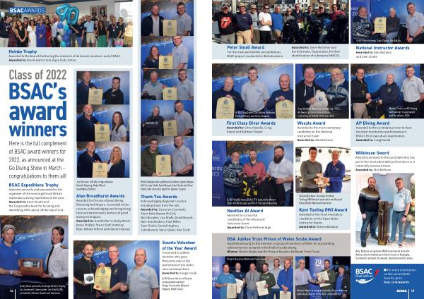 Here is the full complement of BSAC award winners for 2022 , as announced at the Go Diving Show in March – congratulations to them all !