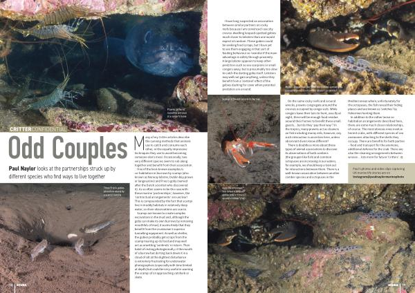 One of the best-known examples is co-habitation in burrows by scampi( also known as Norway lobster, Dublin Bay prawn or langoustine) and Fries’ s goby( named after the Dutch scientist who discovered it). As so often seems to be the case with these marine‘ partnerships’, however, the‘ contractual arrangements’ are unclear! This is compounded by the fact that scampi live in muddy habitats in relatively deep water, so diver observations are scarce.