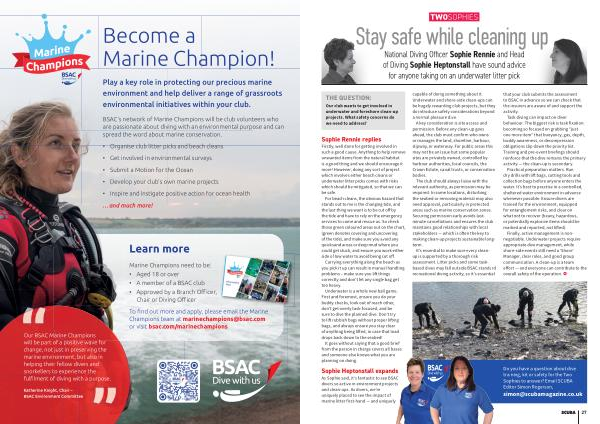BSAC’ s network of Marine Champions will be club volunteers who are passionate about diving with an environmental purpose and can spread the word about marine conservation.