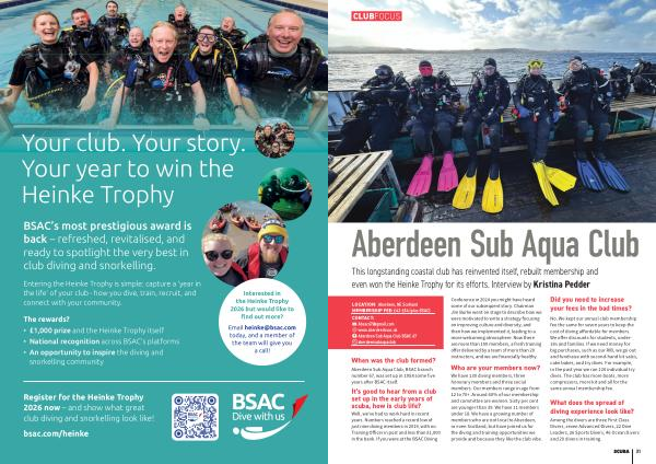 No. We kept our annual club membership fee the same for seven years to keep the cost of diving affordable for members. We offer discounts for students, under- 18s and families. If we need money for big purchases, such as our RIB, we go out and fundraise with second-hand kit sales, cake bakes, and try dives. For example, in the past year we ran 120 individual try dives. The club has more boats, more compressors, more kit and all for the same annual membership fee.