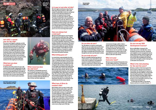 We are constantly training new divers in small numbers ; some stay with the club , some move on . We like to see beginners ’ reactions to initial training in the pool , which to a newcomer is a whole new world . Then when they reach open water , the environment changes , which creates a greater excitement and challenge for each trainee . We do not have specific dates for intake of trainees , the majority are instructed on a one-to-one basis , we align training wherever possible to give us the opportunity to provide club weekends at Ellerton Lake and Capernwray .