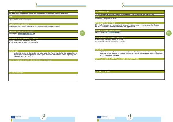 All the instructions for the teacher are in the Word file . You can use the Service design wheel to stimulate critical thinking on products life cycle and awake conversation of how to prolong the life of a product or a service .