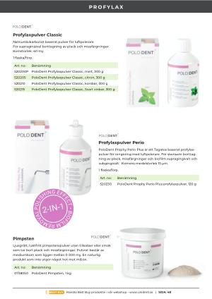 Natriumbikarbonat baserat pulver för luftpolerare . För supragingival borttagning av plack och missfärgningar . Kornstorlek : 40 my
