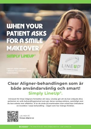 Intresset för Clear Aligners fortsätter att växa . LineUp gör att du kan erbjuda dina patienter en unik behandlingsmetod som gör deras vardag enklare , samtidigt som du kan arbeta mer effektivt . Vi är de enda på marknaden som också kan inkluderar en ScanBox i varje behandling – något som har många fördelar .