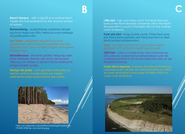 Costa alta e íngreme . O banco do norte da Estônia ou o penhasco de calcário do norte da Estônia ou o Klint do norte da Estônia é uma parte do Báltico Klint na costa norte da Estônia .
