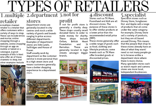 Stores such as TK Maxx, Poundland and Aldi are all discount stores. The purpose of these stores is to offer similar products at a lower price than the recommended retail price (RRP).