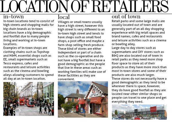 In-town locations tend to consist of high streets and shopping malls for big chain brands as in-town locations have a big demographic and footfall due to many people living and working at in-town locations.