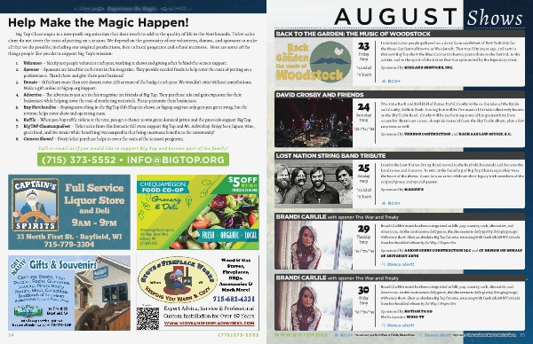 Big Top Chautauqua is a non-profit organization that does much to add to the quality of life in the Northwoods. Ticket sales