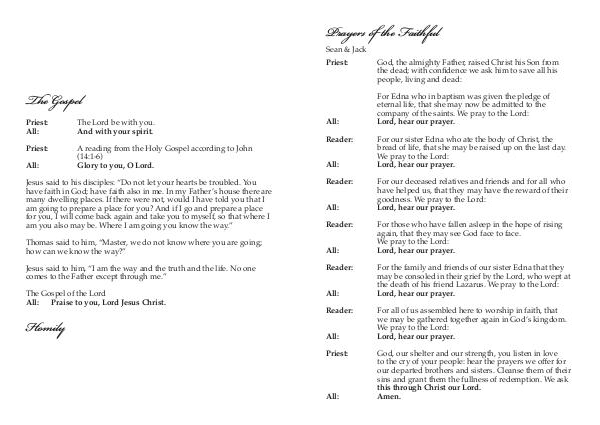 All: For our sister Edna who ate the body of Christ, the