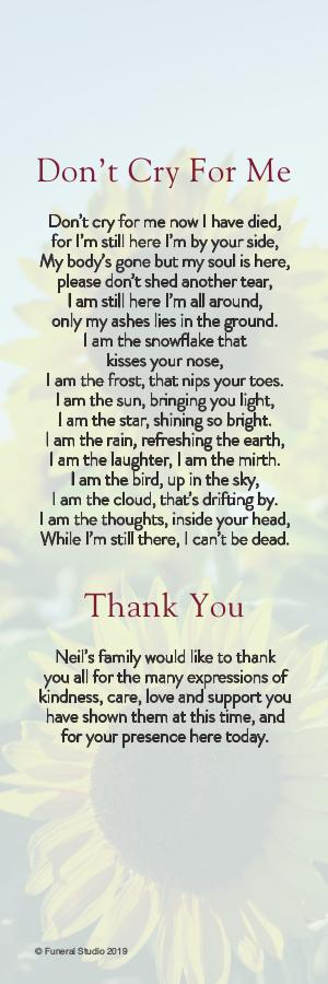 Don’t cry for me now I have died,