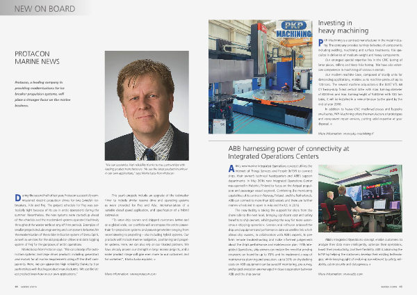 During the second half of last year, Protacon successfully commissioned electric propulsion drives for two Swedish icebreakers, Atle and Frej. The project schedule for Frej was particularly tight because of its use in arctic operations during the summer. Nevertheless, the new systems were started up ahead of the schedule and the modernised systems operated faultlessly throughout the winter without any off hire periods. Examples of smaller projects include engineering and component deliveries for the modernisation of the rudder indication system of Stena Spirit, as well as services for the old propulsion drives and data logging system of Frej for the purposes of arctic operations.