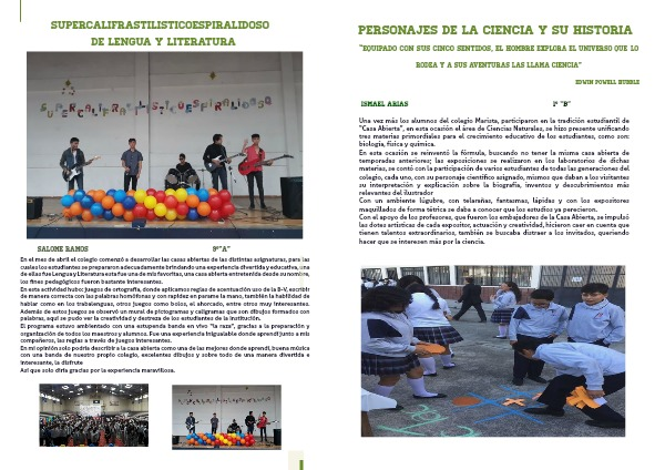Una vez más los alumnos del colegio Marista, participaron en la tradición estudiantil de “Casa Abierta”, en esta ocasión el área de Ciencias Naturales, se hizo presente unificando tres materias primordiales para el crecimiento educativo de los estudiantes, como son: biología, física y química.