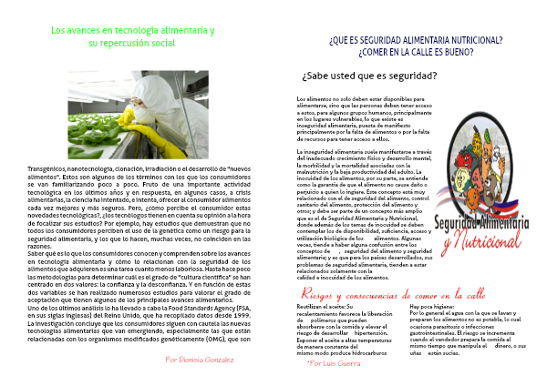 Transgénicos, nanotecnología, clonación, irradiación o el desarrollo de "nuevos alimentos". Estos son algunos de los términos con los que los consumidores se van familiarizando poco a poco. Fruto de una importante actividad tecnológica en los últimos años y en respuesta, en algunos casos, a crisis alimentarias, la ciencia ha intentado, e intenta, ofrecer al consumidor alimentos cada vez mejores y más seguros. Pero, ¿cómo percibe el consumidor estas novedades tecnológicas?, ¿los tecnólogos tienen en cuenta su opinión a la hora de focalizar sus estudios? Por ejemplo, hay estudios que demuestran que no todos los consumidores perciben el uso de la genética como un riesgo para la seguridad alimentaria, y los que lo hacen, muchas veces, no coinciden en las razones.