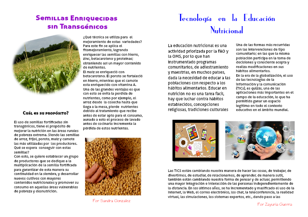 Para este fin se aplica el fitomejoramiento, logrando enriquecer las semillas con hierro, zinc, betacaroteno y proteínas; obteniendo así un mayor contenido de nutrientes.