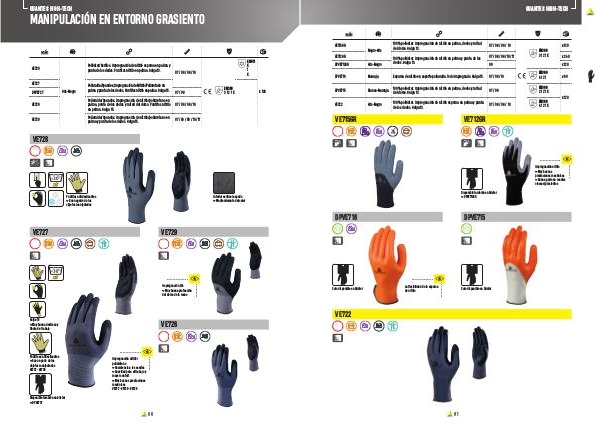 dedos. Galga 13. 09 DPVE716 Naranja Espuma de nitrilo en soporte poliamida. Todo impregnado. Galga 15. 07 / 09 / 10 EN388
