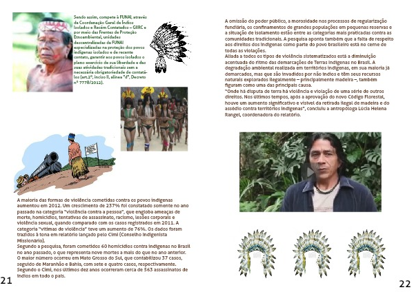 A maioria das formas de violência cometidas contra os povos indígenas aumentou em 2012. Um crescimento de 237% foi constatado somente no ano passado na categoria “violência contra a pessoa”, que engloba ameaças de morte, homicídios, tentativas de assassinato, racismo, lesões corporais e violência sexual, quando comparado com os casos registrados em 2011. A categoria “vítimas de violência” teve um aumento de 76%. Os dados foram trazidos à tona em relatório lançado pelo Cimi (Conselho Indigenista Missionário).