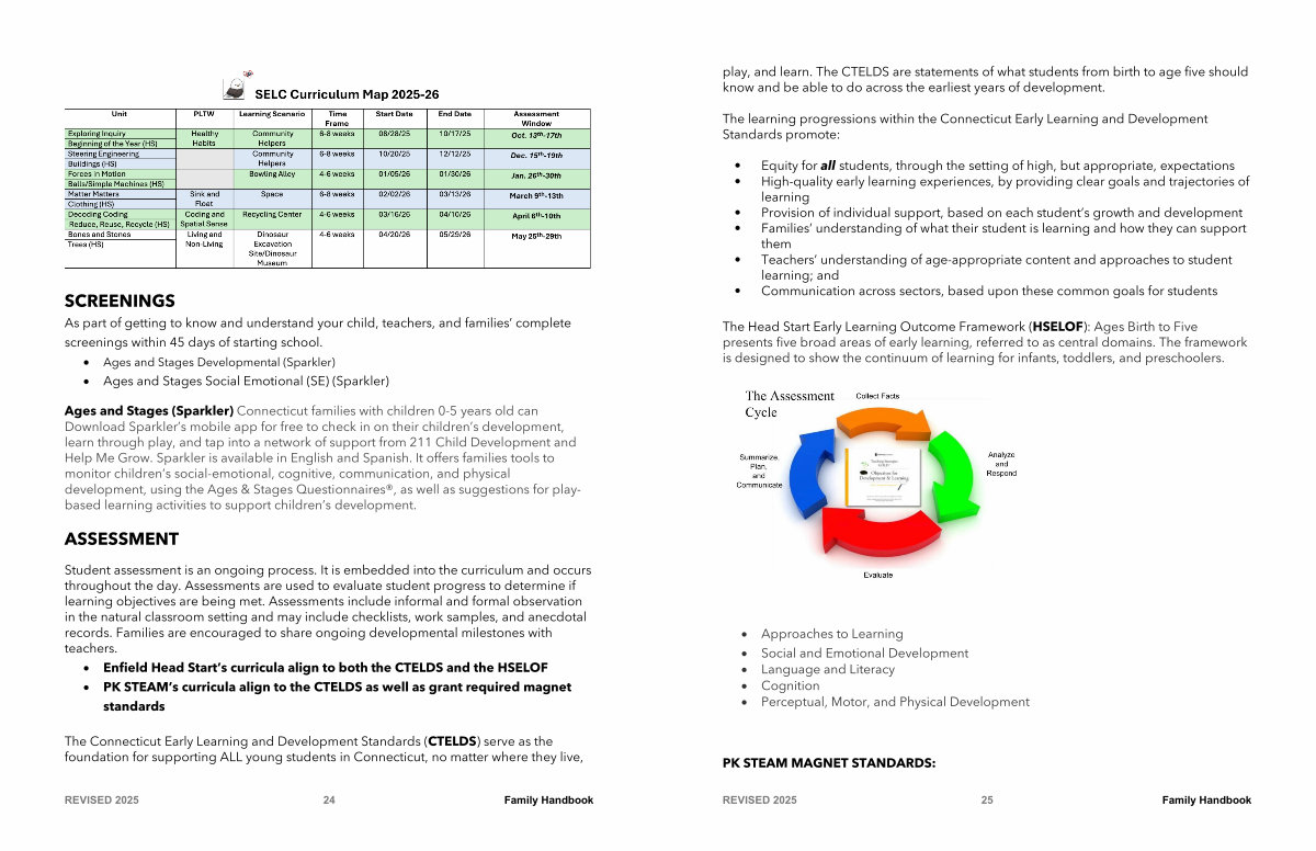 • Enfield Head Start’ s curricula align to both the CTELDS and the HSELOF