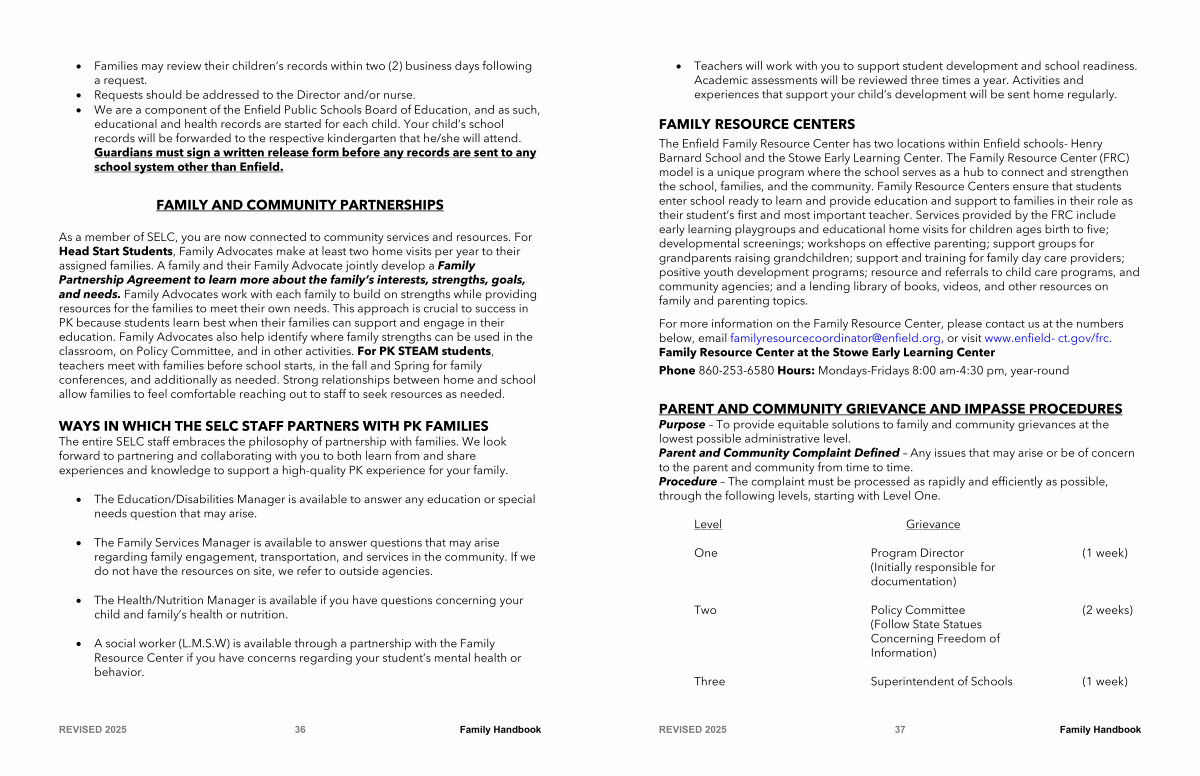 For more information on the Family Resource Center, please contact us at the numbers below, email familyresourcecoordinator @ enfield. org, or visit www. enfield- ct. gov / frc. Family Resource Center at the Stowe Early Learning Center