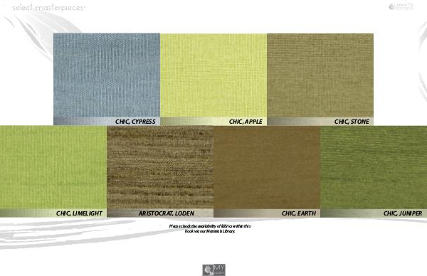 CHIC, CYPRESS CHIC, LIMELIGHT ARISTOCRAT, LODEN Please check the availabilit book via our Mat