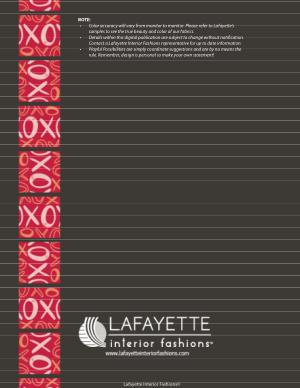 • Details within this digital publication are subject to change without notification . Contact a Lafayette Interior Fashions representative for up to date information .