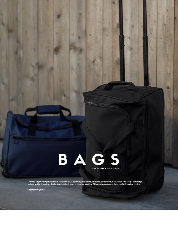 Selected Bags catalog contains full range of bags. All the way from computer cases, toilet cases, backpacks, sportbags, travelbags, trolleys and businessbags. Perfect companion for work, travel or freetime. This catalog we want to help you find the right choice.