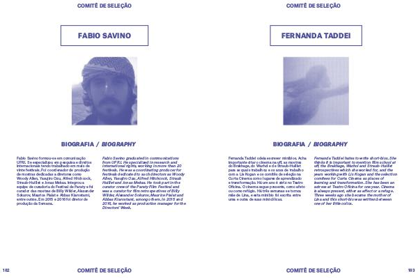 Fernanda Taddei odeia escrever minibios. Acha importante citar o cinema na uff, as mostras do Brakhage, do Warhol e de Straub-Huillet para as quais trabalhou e os anos de trabalho com a Lis Kogan e os comitês de seleção na Curta Cinema como lugares de aprendizado e transformação. Há um ano é atriz no Teatro Oficina. O cinema segue presente, como afeto ou como refúgio. Há três semanas se tornou mãe de Lina, e esta minibio foi escrita entre uma e outra de suas minicólicas.