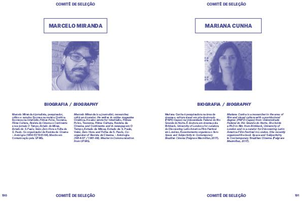 Marcelo Miranda is a journalist, researcher, critic and curator. He writes in online magazine Cinética. He also wrote for Interlúdio, Filmes Polvo, Teorema, Filme Cultura, Revista de Cinema and Continente and in newspapers O Tempo, Estado de Minas, Estado de S. Paulo, Valor, Zero Hora and Folha de S. Paulo. Coorganizer of Revista de Cinema- Antologia( 1954-57 / 1961-64). Master in Communication from UFMG.