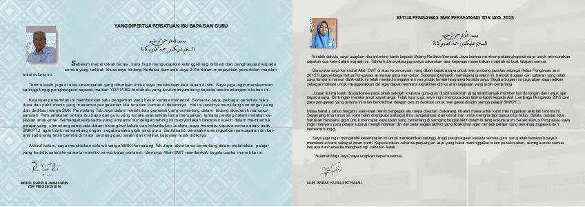 semua yang terlibat, khususnya Sidang Redaksi Semarak Jaya 2015 dalam menjayakan penerbitan majalah