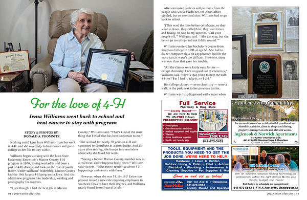 Nothing could keep Irma Williams from her work in 4-H, and she was ready to beat cancer and go to college in her 50s to stay with it.