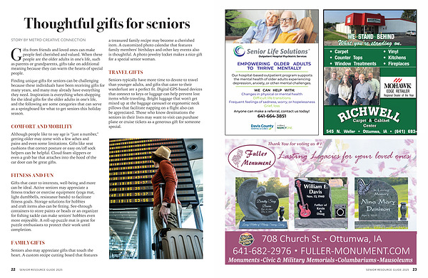 Finding unique gifts for seniors can be challenging because these individuals have been receiving gifts for many years, and many may already have everything they need. Inspiration is everything when shopping for the ideal gifts for the older adults in one ' s life, and the following are some categories that can serve as a springboard for what to get seniors this holiday season.