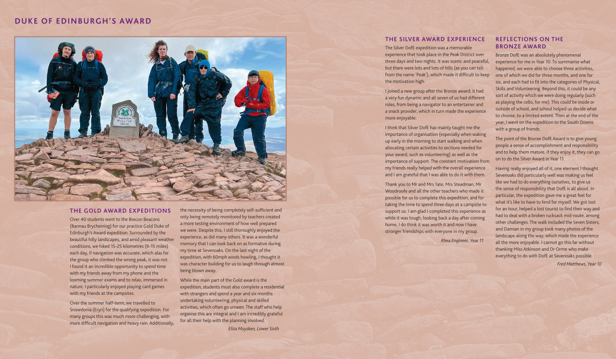 Over 40 students went to the Brecon Beacons( Bannau Brycheiniog) for our practice Gold Duke of Edinburgh’ s Award expedition. Surrounded by the beautiful hilly landscapes, and amid pleasant weather conditions, we hiked 15-25 kilometres( 9-15 miles) each day, if navigation was accurate, which alas for the group who climbed the wrong peak, it was not. I found it an incredible opportunity to spend time with my friends away from my phone and the looming summer exams and to relax, immersed in nature. I particularly enjoyed playing card games with my friends at the campsites.
