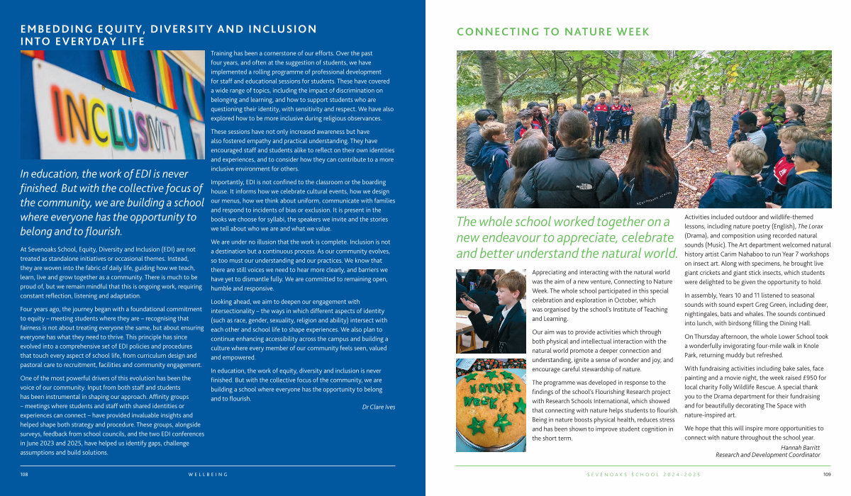 At Sevenoaks School, Equity, Diversity and Inclusion( EDI) are not treated as standalone initiatives or occasional themes. Instead, they are woven into the fabric of daily life, guiding how we teach, learn, live and grow together as a community. There is much to be proud of, but we remain mindful that this is ongoing work, requiring constant reflection, listening and adaptation.
