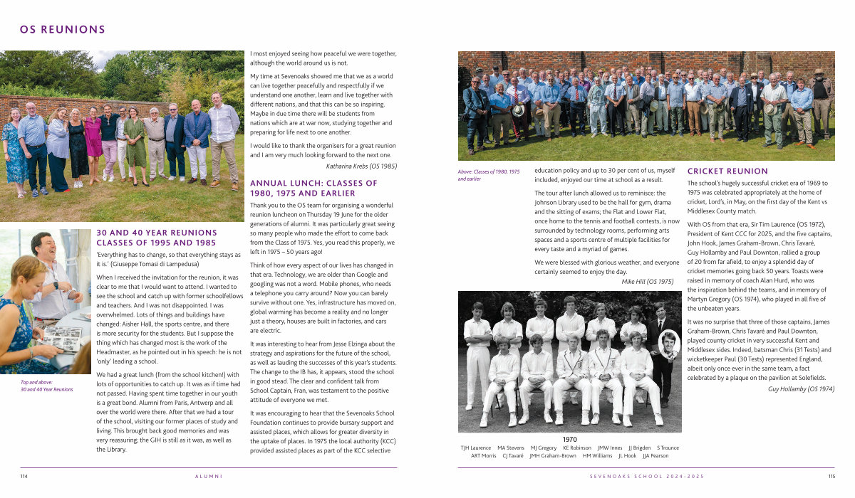 Thank you to the OS team for organising a wonderful reunion luncheon on Thursday 19 June for the older generations of alumni. It was particularly great seeing so many people who made the effort to come back from the Class of 1975. Yes, you read this properly, we left in 1975 – 50 years ago!