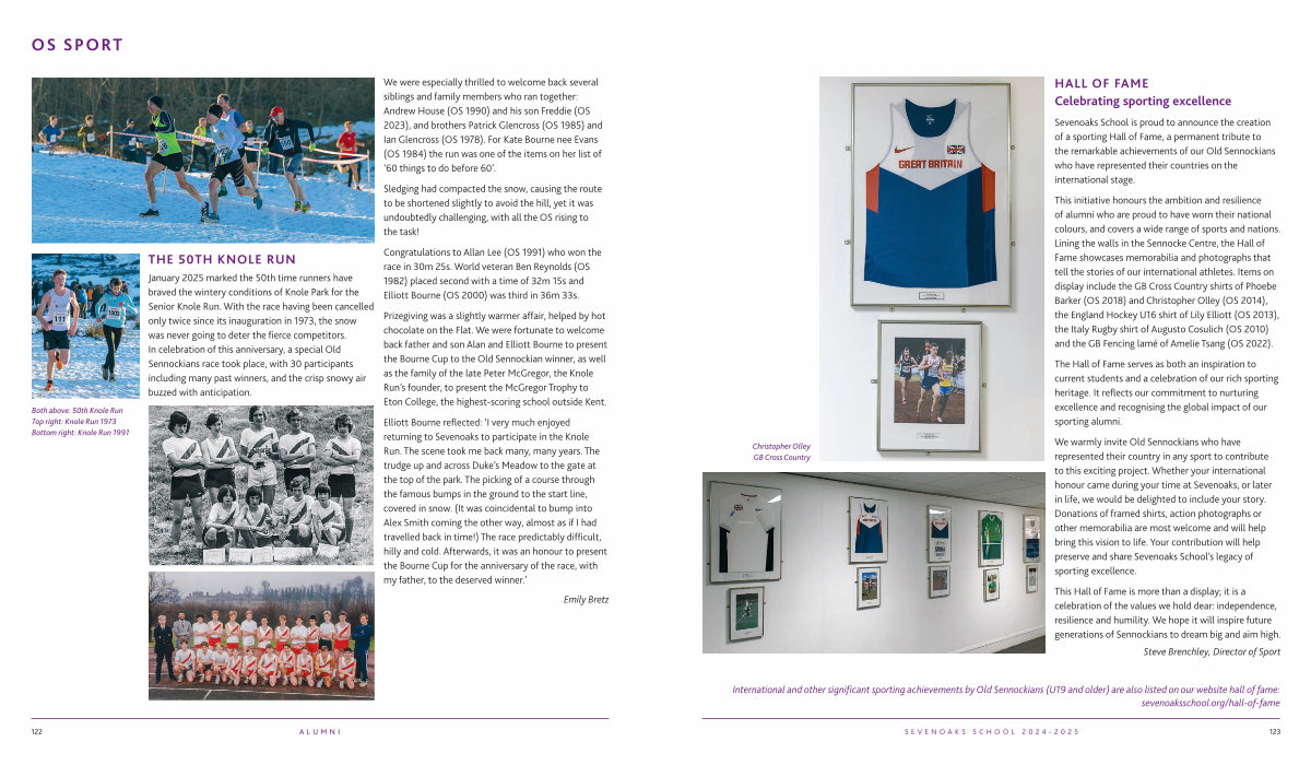 International and other significant sporting achievements by Old Sennockians( U19 and older) are also listed on our website hall of fame: sevenoaksschool. org / hall-of-fame