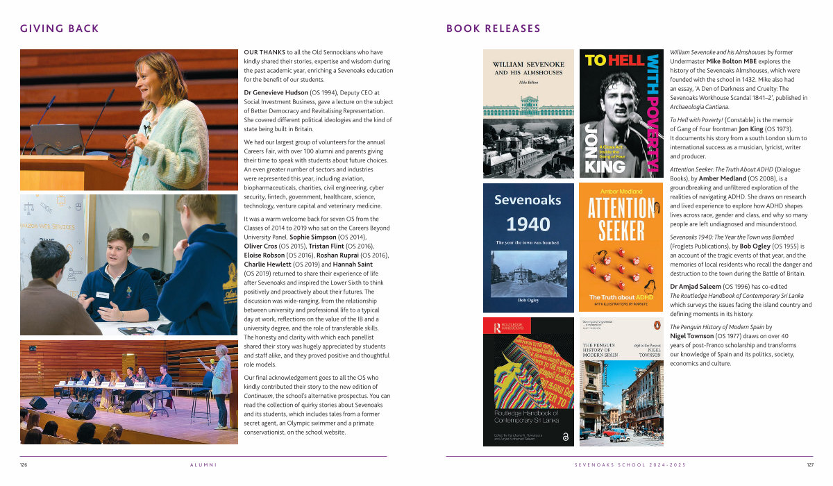 OUR THANKS to all the Old Sennockians who have kindly shared their stories, expertise and wisdom during the past academic year, enriching a Sevenoaks education for the benefit of our students.