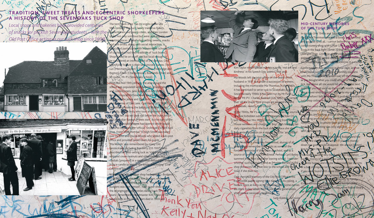 Ma Woods left the post office on the death of her husband in 1937, but under a succession of owners, including the memorable Ma Thornton in the 1940s, it has continued to serve tuck to Sevenoaks pupils. Since the early 1990s it has been run by Mr Patel – hence‘ Mr P’ s’. Charles Rodmell( OS 1992) was certain that‘ all the major food groups are covered in there( chocolate, sweets AND crisps)’.